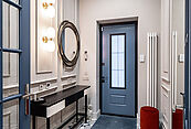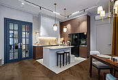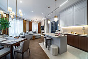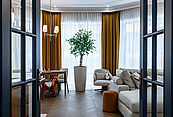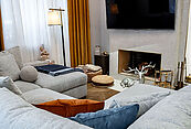 Просторная гостиная с камином становится сердцем дома — идеальное пространство для семейных вечеров и приёма гостей. Для максимального удобства предусмотрены лифт, гараж и продуманная планировка, где каждая деталь работает на комфорт и эстетику повседневной жизни. Качественные материалы отделки, свет: Visual Comfort, Gramarcy, Dantone, сантехника: Grohe (Германия), Burlington (Англия), мебель выполнена на заказ, техника: LG, ASCO.