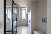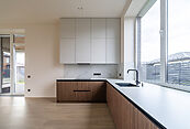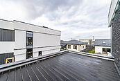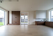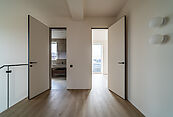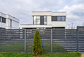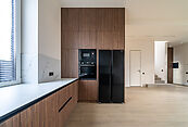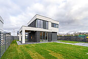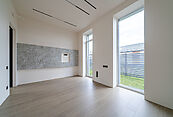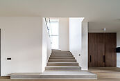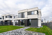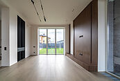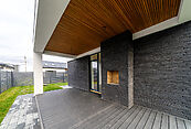 Фасад дома комбинированный, сочетает ригельный кирпич и панели из лиственницы, что создает эстетичный облик и надежно защищает конструкционные материалы. Дополняет картину архитектурная подсветка. Основание дома - монолитная железобетонная плита, обеспечивающая надежный и долговечный фундамент. Стены возведены из керамического с дополнительным наружным утеплением. Прочность и устойчивость конструкции обеспечивают монолитные перекрытия. Крыша плоская, на монолитном основании, покрыта мембраной.