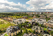 Внутреннее пространство поселка грамотно организовано, что создает все условия для отдыха на свежем воздухе: прогулки по парковой зоне вдоль клумб и изящных фонарей, оборудованные детские площадки.