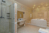 Третий этаж: мастер-спальня, джакузи, гардеробная, детская спальня, комната для отдыха, три санузла;