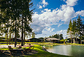 Посёлок окружает хвойный реликтовый лес площадью 4 688 га. Более 2 700 вековых елей на территории поселка создают атмосферу уединения и покоя. Центральным элементом ландшафта стал каскад прудов протяжённостью 400 м (площадь — 1,5 га). Здесь обустроена пляжная зона с лежаками, работает бар, есть костровая площадка.
