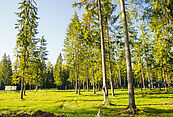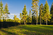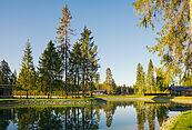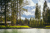 Посёлок окружает хвойный реликтовый лес площадью 4 688 га. Более 2 700 вековых елей на территории поселка создают атмосферу уединения и покоя. Центральным элементом ландшафта стал каскад прудов протяжённостью 400 м (площадь — 1,5 га). Здесь обустроена пляжная зона с лежаками, работает бар, есть костровая площадка.