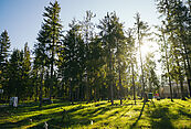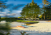 Посёлок окружает хвойный реликтовый лес площадью 4 688 га. Более 2 700 вековых елей на территории поселка создают атмосферу уединения и покоя. Центральным элементом ландшафта стал каскад прудов протяжённостью 400 м (площадь — 1,5 га). Здесь обустроена пляжная зона с лежаками, работает бар, есть костровая площадка.