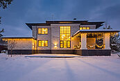 Дом представляется с изысканной отделкой и премиальным оснащением. Здание построено из благородного бельгийского кирпича, установлены высококачественные окна Reynaulds. В доме предусмотрен просторный зал с высокими потолками 6,4 метра, спальни с потолками 3,2 метра. Интерьер дополнен роскошным немецким камином и кухней от Giulia Novars. Бытовая техника представлена брендами Asko и Liebherr. Для персонала предусмотрена отдельная квартира со спальней и собственным входом. Дом сочетает в себе комфорт, функциональность и премиальное качество исполнения.