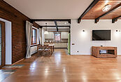 Первый этаж: гостиная, кухня-столовая, санузел, сауна с душевой, техническое помещение для хранения и обслуживания;