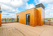 На эксплуатируемой кровле предусмотрено достаточно места для отдыха всей семьей.