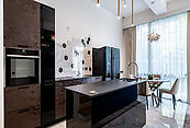 В таунхаусе выполнена превосходная дизайнерская отделка из премиальных материалов.