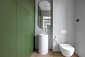 Первый этаж: прихожая, санузел, кухня-гостиная, столовая;