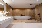 На кухне премиальная техника Asko, холодильник фирмы Liebherr, плита со встроенной угольной вытяжкой Bora.