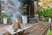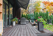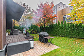 На 2,8 сотках ухоженный участок с туями и барбекю, зарядка для электромобилей.