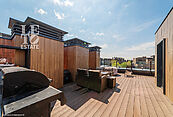 На эксплуатируемой кровле предусмотрено достаточно площади для отдыха всей семьей, где организовано удобное место для установки кухни, что позволит наслаждаться готовкой на свежем воздухе.