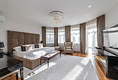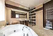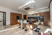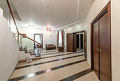 Дом, общей площадью 700 кв.м., построен в английском стиле. Дом - трехэтажный. Облицован клинкерным кирпичом. В доме выполнена дизайнерская отделка. Интерьер оформлен в современном стиле. В каждой комнате предусмотрен санузел. В доме есть кухня-гостинная с камином и выходом на террасу с зоной BBQ. Есть блок для персонала и гараж на два машиноместа. Кухня на заказ (Германия), техника Gaggenau (Германия), свет Martini (Италия), система кондиционирования Mitsubishi, газовое оборудование Buderus (Германия).