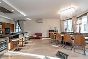 Участок прямоугольный, площадью 21 сотка. По периметру его обрамляет живая изгородь, растут хвойные и фруктовые деревья, есть навес на 2 автомобиля. Все помещения полностью меблированы. Установлена премиальная бытовая техника. Кухня на заказ (Германия), техника Gaggenau (Германия), свет Martini (Италия), система кондиционирования Mitsubishi, газовое оборудование Buderus (Германия).