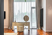 роскошный, словно с обложки глянцевого журнала, женский мастер блок. Здесь все только для НЕЕ: приватная спальня с будуаром, ванная комната с зенитным окном, прямо над ванной, чтобы смотреть на звезды и две гардеробные. А еще два прекрасных детских спальных блока.
