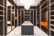 С одной стороны находится место силы для НЕГО - просторный мужской мастер блок с кабинетом, спальней, ванной комнатой с угловым окном и двумя бутик-гардеробными, а с другой —