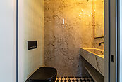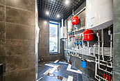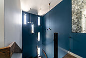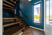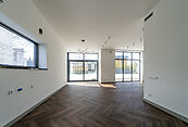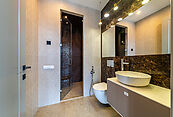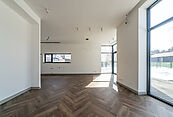 На первом этаже просторная светлая гостиная с кухней-столовой и выходом на террасу. Дом оборудован современными системами приточно-вытяжной вентиляции и системой кондиционирования. Установлены теплые водяные полы. Выполнена подготовка к системе "Умный дом" и система защиты от протечек.