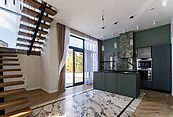 Дом построен по архитектурному и дизайнерскому проекту с использованием современных материалов и технологий. Есть фото и видео всех этапов строительных работ. Панорамное остекление, установлены мультифункциональные стеклопакеты Solar с защитой от ультрафиолетовых лучей. На первом этаже просторная светлая гостиная с кухней-столовой и выходом на террасу. На кухне установлены мебель и техника. Дом оборудован современными системами приточно-вытяжной вентиляции и системой кондиционирования. Установлены теплые водяные полы. Выполнена подготовка к системе "Умный дом" и система защиты от протечек.