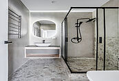 Ремонт завершен в 2025 году и выполнен в современном минималистичном стиле. Планировочное решение позволяют максимально эффективно и функционально использовать все пространство дома, а панорамные окна визуально добавляют пространства. Рядом со входом в дом имеется небольшое подсобное помещение для различного инвентаря или велосипедов.