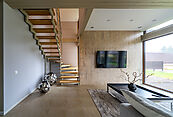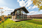 Дом построен по немецкой технологии строительства "фахверк", при это пирог стен усилен гидромембраной и металлическим гофролистом, за счет чего теплопроводность стен становится очень низкая, а издержки на поддержание необходимой температуры минимальными.