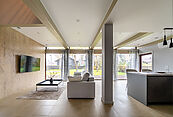 Во всех помещениях установлено панорамное остекление, что увеличивает ощущение простора и делает их очень светлыми.
