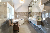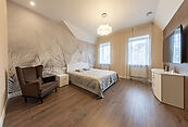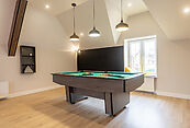 Второй этаж: Мастер-спальня с гардеробной и санузлом, спальня, детская спальня, гардеробная, ванная, игровая зона с камином, с бильярдом и барной стойкой