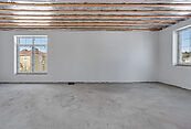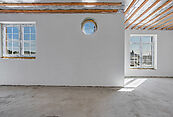 В доме возведены перегородки, выровнены и отштукатурены стены.