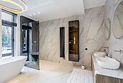 Здесь каждое домовладение находится в сосновом лесу, в поселке асфальтированные дороги с уличным освещением, центральные коммуникации и круглосуточная охрана с видеонаблюдением.