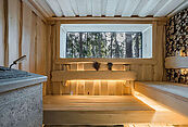 Первый этаж: прихожая, парилка, душевая, санузел, кухня-столовая, крытая веранда.