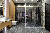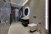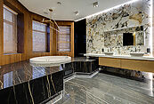 Второй этаж: мастер-спальня с санузлом, душевой и джакузи, гостевая спальня, детская спальня, гардеробная, санузел с ванной и душевой кабиной, санузел с душевой кабиной.