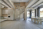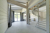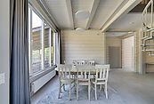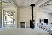 первый этаж: холл, гардеробная, кухня, столовая с выходом на террасу, гостиная с камином, кабинет, санузел, бойлерная