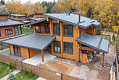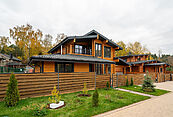 Вашему вниманию представлен полностью готовый дом из бруса, расположенный в 11 км от МКАД по Новорижскому шоссе. Изготовлен из древесины северных хвойных пород. Этот материал не дает усадки, экологически безопасен и позволяет чувствовать себя комфортно в климатических условиях России. Кровельная и водосточная система выполнена из металла со специальным покрытием фирмы Grand Line. Все центральные коммуникации заведены и разведены по дому: газ, электричество, водопровод, канализация. Уютный, светлый, современный, стильный дом с мебелью под ключ. Проект выполнен в классическом стиле. Немного внесены корректировки в проект за счет остекления веранды и пристройки на 75 кв.м. Есть квартира для персонала с отдельным входом, а также шкафы и кладовка для хранения садовой техники, инструментов, автомобильных шин. На участке сделан навес для 1 а/м.