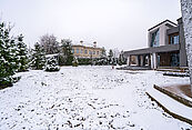 Первый этаж: прихожая, гардеробная, два холла, кухня, столовая, гостиная, спальня с санузлом, кинотеатр, кладовая, два санузла, постирочная, котельная, терраса, зона барбекю, гараж для 4-х автомобилей с квартирой для персонала на втором этаже с отдельным входом, СПА-зона с бассейном, хаммамом, сауной, раздевалкой, террасой и санузлом;