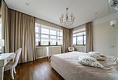 Второй этаж: мастер-спальня с гардеробной и ванной комнатами, три спальни, каждая со своей гардеробной и ванной комнатами.