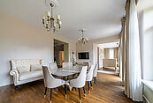 Первый этаж: прихожая, гардеробная, кухня с выходом на большую веранду, столовая, гостиная, каминный зал, гостевая комната, санузел, серверная, техническое помещение, гараж для два автомобилей;