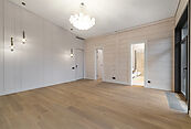 Второй этаж: мастер-спальня с гардеробной и санузлом, две детские спальни с санузлами и гардеробными, холл.