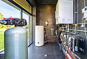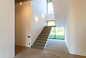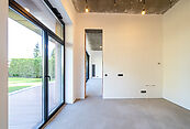 Большие панорамные окна Alutech с электроприводом и высокие потолки 4,1 м создают в доме больше пространства и света. Теплые полы разведены на двух этажах с установкой регуляторов в каждом помещении. Дополнительно отапливаются террасы.