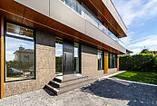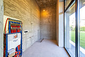 Первый этаж: гардеробная, гостевой санузел, спальня с санузлом, кухня - столовая - гостиная, техническая кухня с кладовой комнатой, постирочная, кабинет/спальня с санузлом, спальня для персонала со своим санузлом