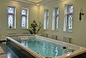 Первый этаж: кухня, столовая, гостиная , кабинет, SPA-зона со спа-бассейном Endless pool, джакузи, санузел, сауна Harvia и зона отдыха, гостевой санузел, постирочная, холл с прямым выходом в гараж, гараж 50 м², котельная с хозяйственной зоной, крытые террасы с диванами и обеденной зоной;