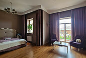 Второй этаж: мастер-спальня с гардеробом, ванной и балконом с видом на участок, детская зона со своей гостиной и гардеробом, две гостевые спальни, ванная комната, просторный холл со 2-м светом, бильярдная/фитнес-зона.
