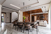 Первый этаж: прихожая, холл, гардеробная, санузел, кухня-гостиная-столовая с выходом на террасу, рабочая кухня, спальня со своей гардеробной и ванной комнатами, гостевая спальня, котельная, кладовая, гараж на два машиноместа.