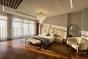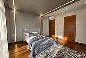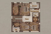 Второй этаж: холл, мастер-спальня с санузлом и гардеробной, балкон, две детские спальни с санузлами и гардеробными.