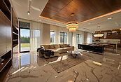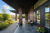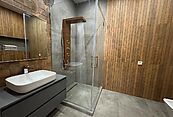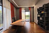 Первый этаж: прихожая, холл, гардеробная, гостиная-кухня-столовая с выходом на террасу, кабинет, санузел, кладовая, котельная, постирочная, гараж для 2-х автомобилей;