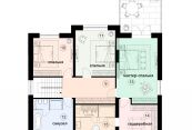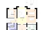 Первый этаж – прихожая, постирочная, санузел, спальня, гостиная, кухня-столовая, терраса, кабинет.