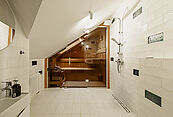 Мансардный этаж: гостиная, игровая комната, спальня, СПА-зона с сауной и санузлом.