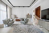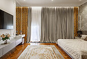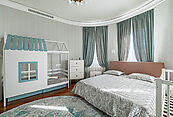 Второй этаж: две спальни с собственными гардеробными и санузлами, две спальни, санузел, гардеробная, кабинет с сейфовой комнатой и санузлом;