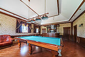 Первый этаж: холл, спальня, санузел, гостиная, кухня-столовая, зимний сад, бильярдная, санузел, котельная с выходом на улицу;