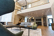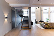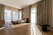 Второй этаж: холл, мастер-спальня с санузлом и гардеробной, две спальни со своими гардеробными и санузлами, спальня с санузлом, выход на эксплуатируемую кровлю с зоной отдыха и барбекю.