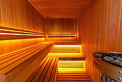 Первый этаж: холл, гардеробная, кухня-столовая-гостиная, гостевая спальня с санузлом и гардеробной, кабинет, бассейн, сауна, санузел, комната отдыха, блок для персонала (комната с санузлом), котельная гараж,
