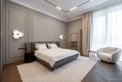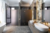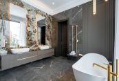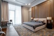 Второй этаж: две мастер-спальни с гардеробными и санузлами, три спальни, кабинет, санузел.