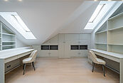 третий этаж: спальня, санузел с ванной и инфракрасной сауной, верхняя гостиная с ТВ-зоной, мастерская.